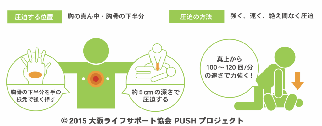 一般的には「心臓マッサージ」と呼ばれる応急処置は、専門的には「胸骨圧迫」といいます。